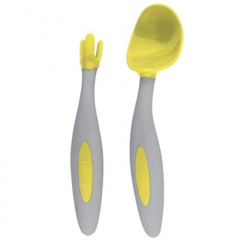 Our cutlery set has been designed with a leading paediatric occupational therapist (OT) as the ideal toolkit for tots who are ready to self feed. The unique spoon shape acts as shovel helping little ones to scoop up their food, even with a flat plate. The unique deep scoop spoon shape and angled handles encourages correct hand to mouth positioning, and helps to contain food within the spoon as bubs practices bringing it to his/her mouth, which means more food makes it to the mouth and less mess! Our unique flork has been designed to fit the size and shapes of little mouths. Its curved blunt prongs are gentler (and safer) on little mouths and gums. Set comes complete with a handy travel case to keep utensils clean before mealtime on the go, and after to prevent soiling in nappy bags or hand bag.