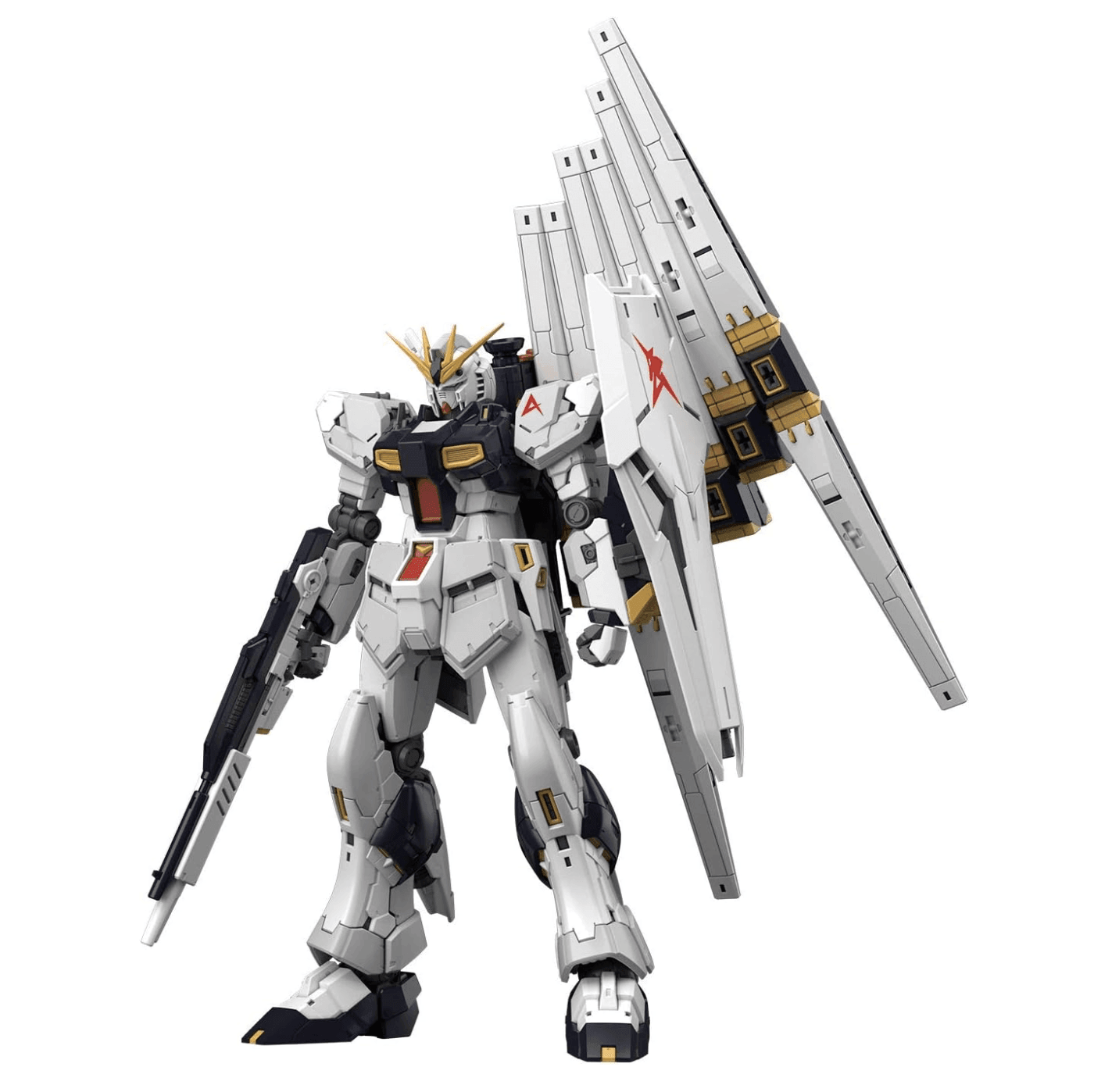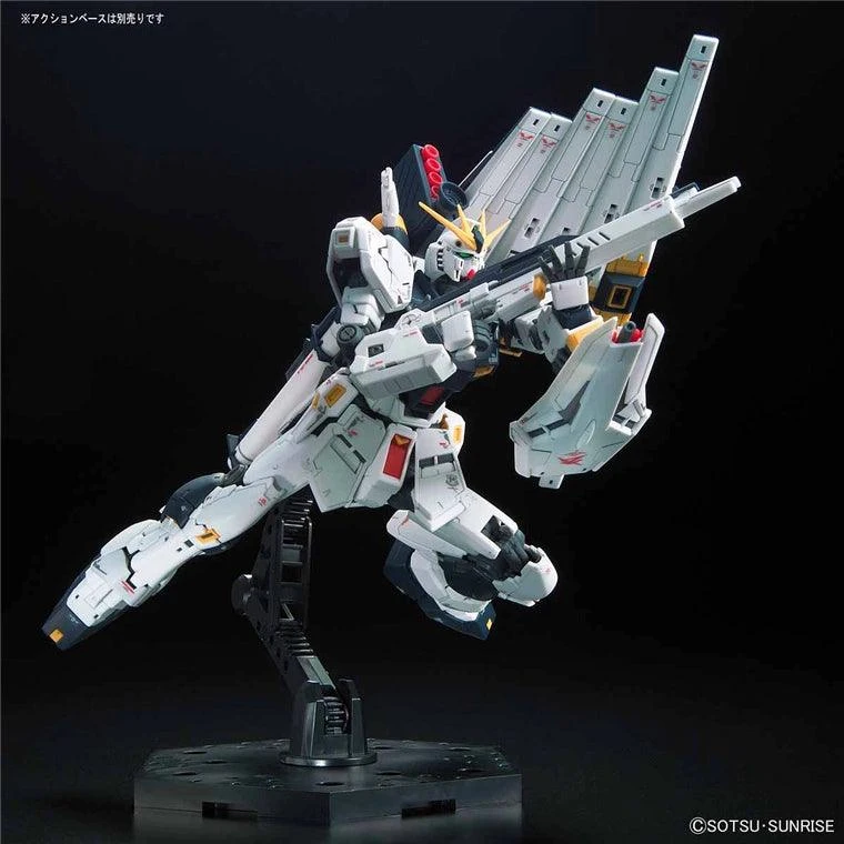 Discover the iconic Amuro Ray's NU Gundam in an RG kit release from Bandai. This model kit brings the legendary mobile suit to life with its distinctive colors meticulously reproduced, including three shades of light gray to enhance the visual depth and appeal. Experience unparalleled flexibility with fully articulated shoulder and abdomen joints, allowing for increased posability. The shoulder armor is designed to flex for more dynamic posing, while the leg armor slides in tandem with each joint movement, adding to the realism of this model. It comes fully equipped with an arsenal of weapons, including a beam rifle, hyper bazooka, missiles, and more.