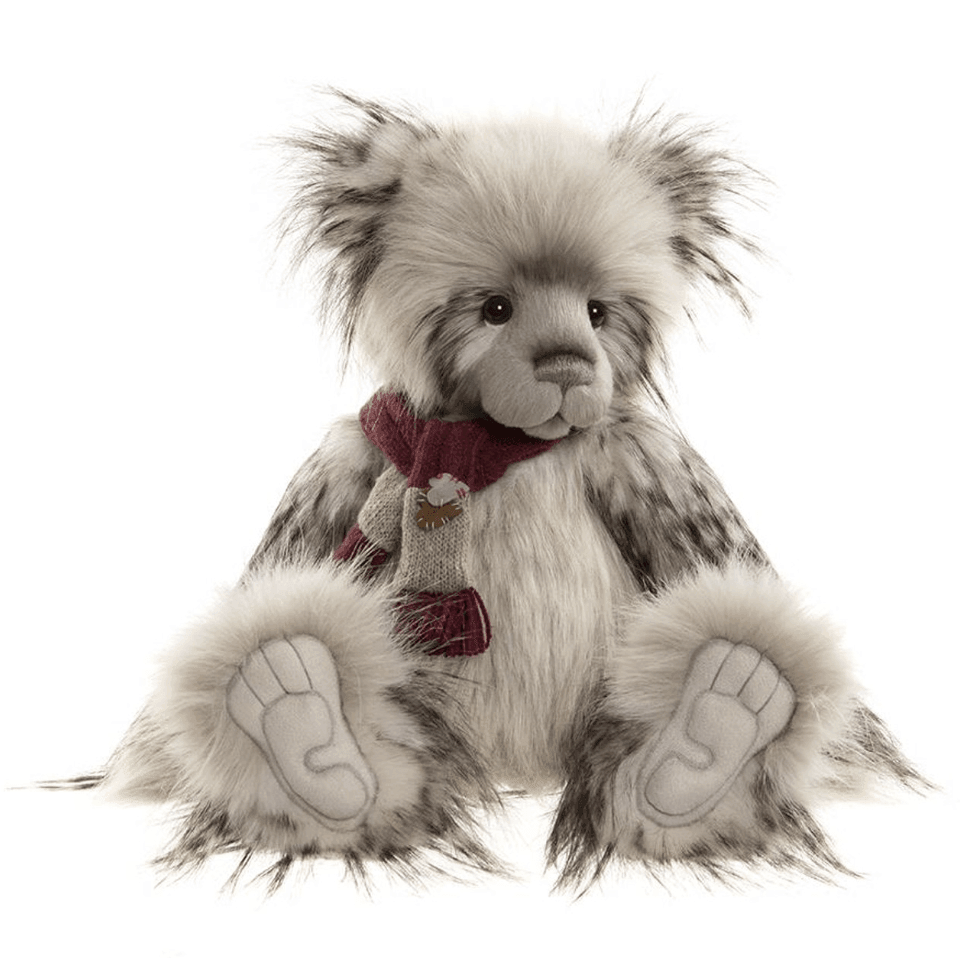 Charlie Bears Jonathan is a bear-utiful boy made from stunning long feathered plush fur. He wears a cosy scarf with hand embroidered hearts and he'll surely melt your heart if he joins your hug!