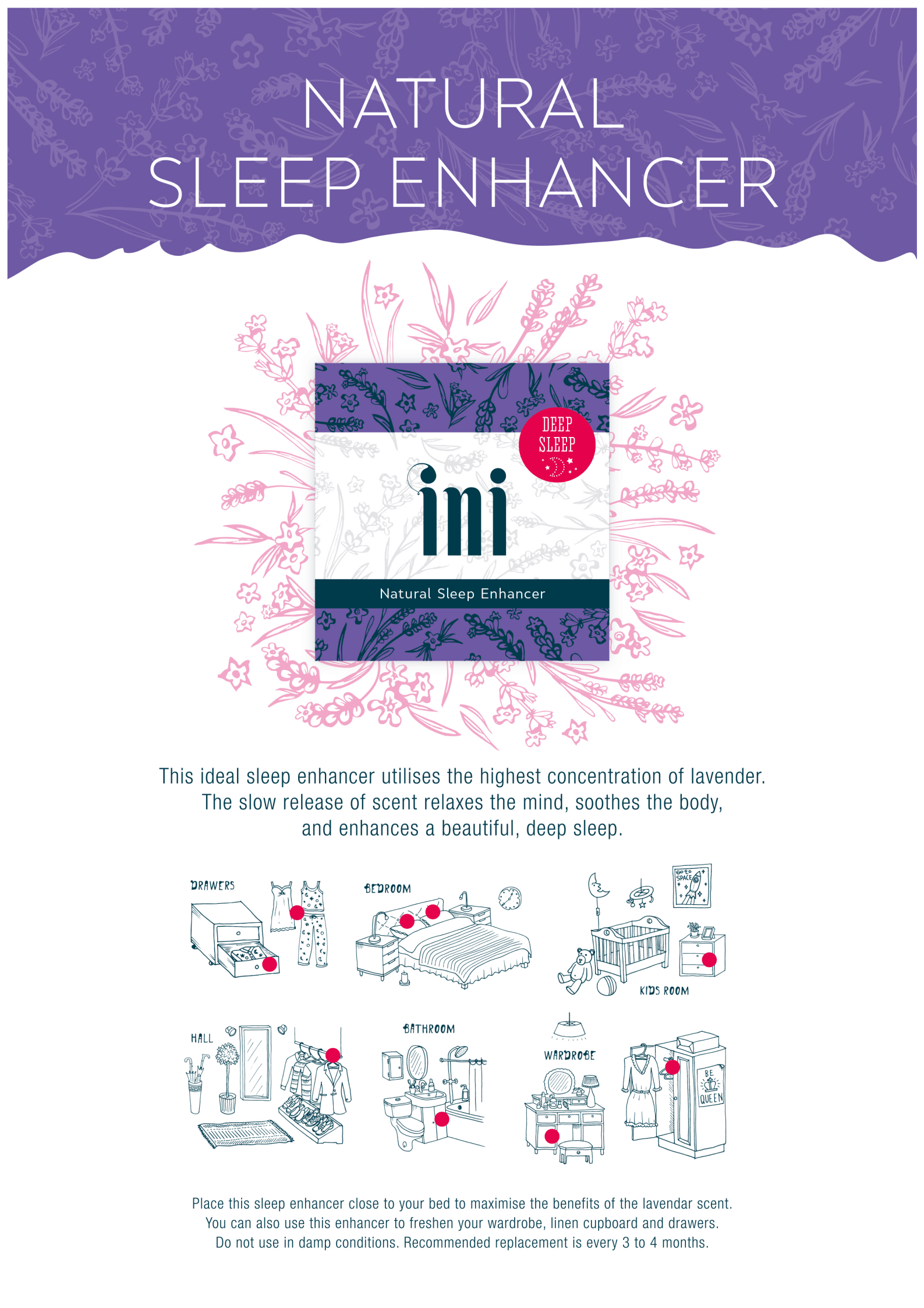 This ideal sleep enhancer utilises the highest concentration of lavender. The slow release of scent relaxes the mind, soothes the body, and enhances a beautiful, deep sleep.