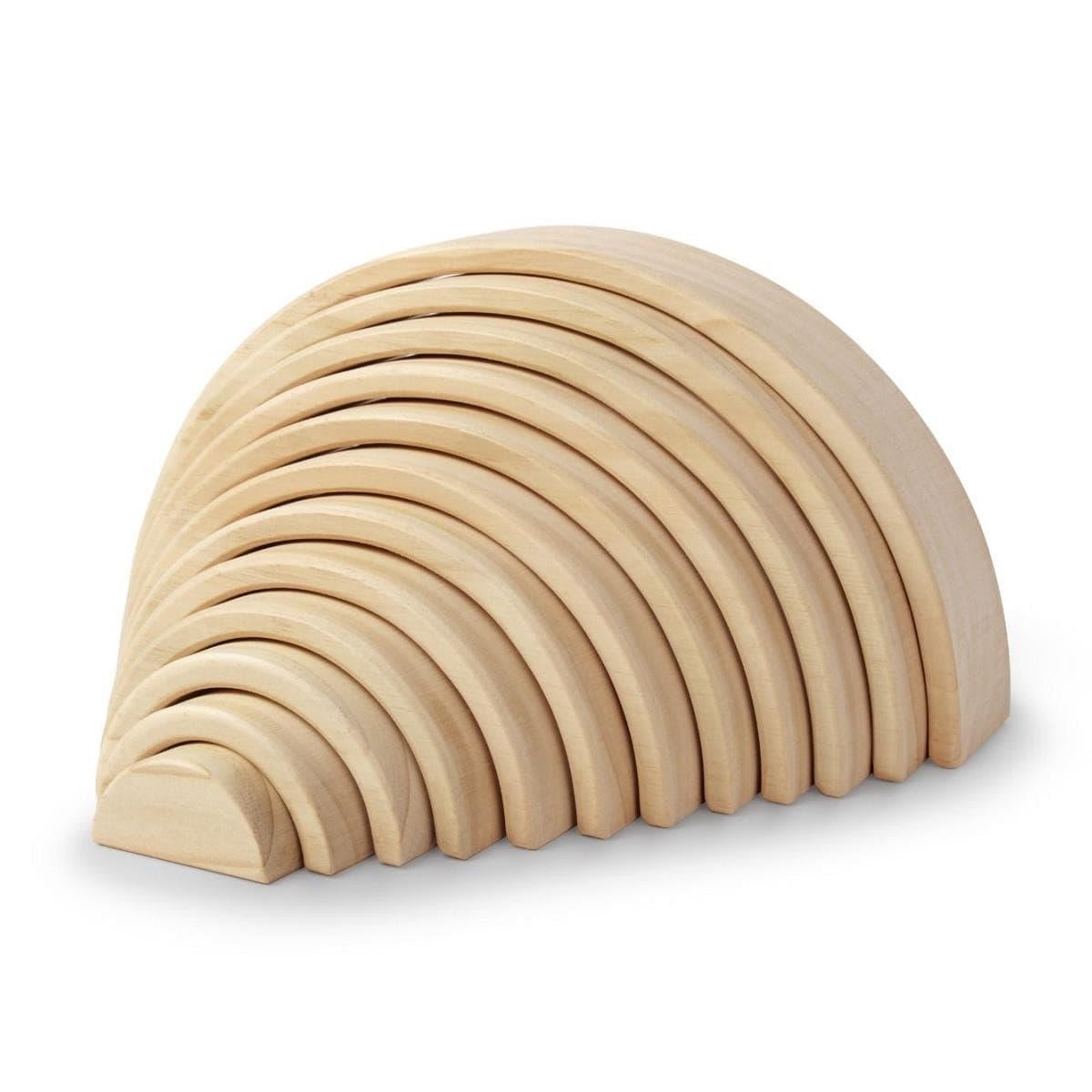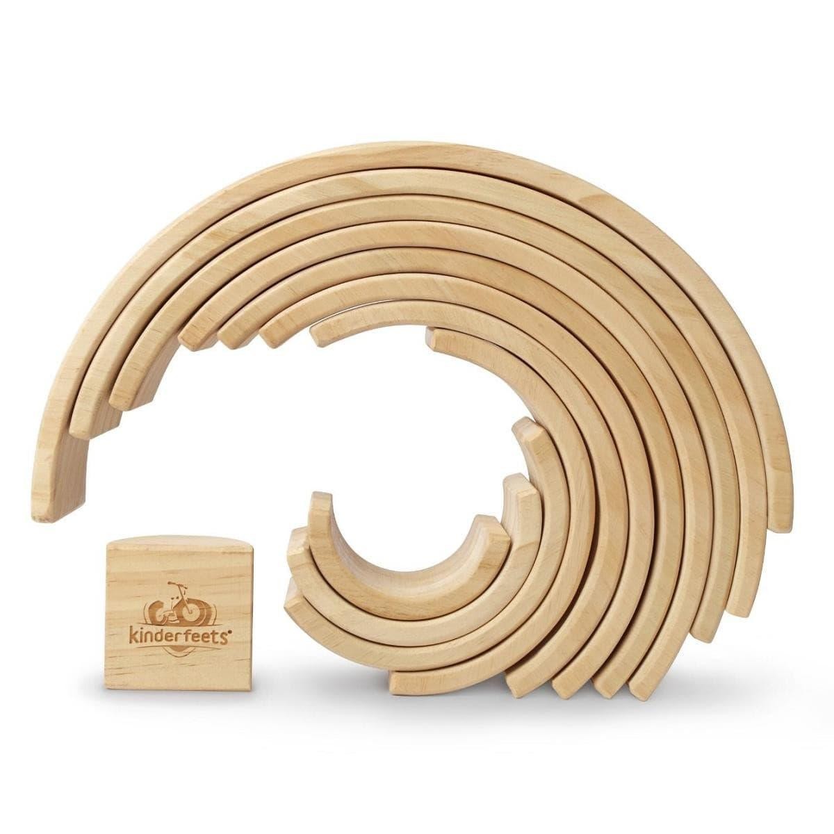 Explore an original toy used in Waldorf and Montessori play: the Kinderfeets Large Wooden Arches in Natural! 12 stackable arches encourage children to sort, assemble and develop cognitively while enjoying imaginative free play.