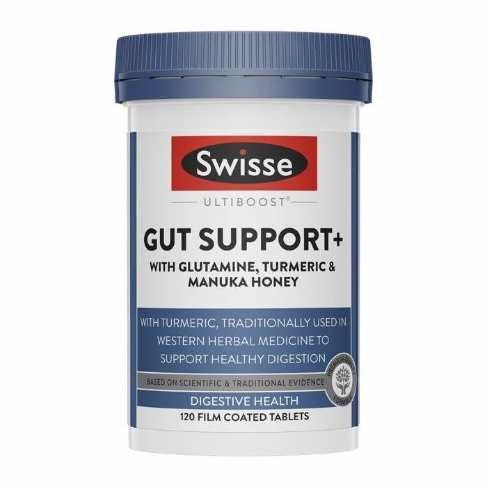 Swisse Ultiboost Gut Support+ contains turmeric to support healthy digestion, as well as licorice and vitamin C for body tissue support and zinc to help with metabolism. This premium quality formula also contains manuka honey and glutamine.