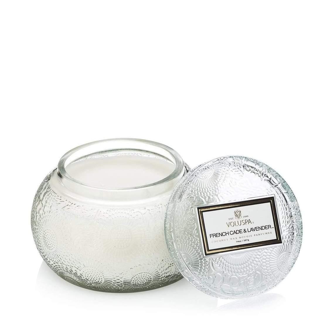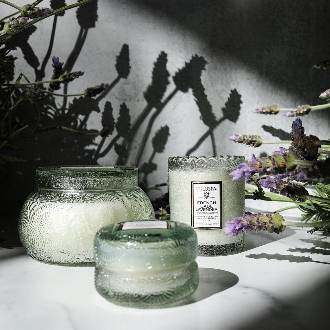 A favourite the world over, this delicate floral infused candle evokes a provincial french garden after glorious spring rain. Warming french cade wood is the perfect companion to the comforting notes of lavender and vibrant verbena. Presented in a blue-hued Chawan vessel featuring VOLUSPA's signature Japonica embossing.